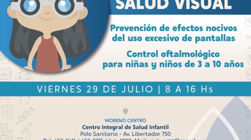 El Municipio de Moreno, a través de la Secretaría de Salud y Ambiente, estará llevando a delante la “Campaña de Salud Visual”, destinada principalmente a la prevención de efectos nocivos del uso excesivo de pantallas en niñas y niños de 3 a 10 años que residan en el partido de Moreno.