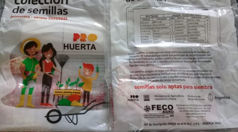 El programa ProHuerta del INTA y el Ministerio de Desarrollo Social de la Nacion comenzó a distribuir a través de sus agencias del todo el país sus kits de semillas para la creación de huertas agroecológicas de la temporada primavera/verano 2022-2023.
