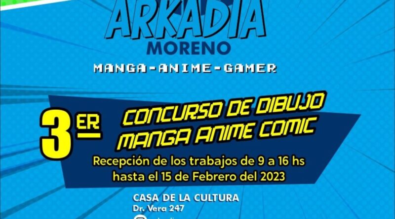 El Municipio de Moreno, a través de la Subsecretaría de Cultura, extendió hasta el día 15 de febrero la entrega de presentación de trabajos para participar del 3° concurso de dibujo Manga, Animé y Comic que realizará Arkadia Moreno, en la Casa de la Cultura, ubicada en Doctor Vera 247.