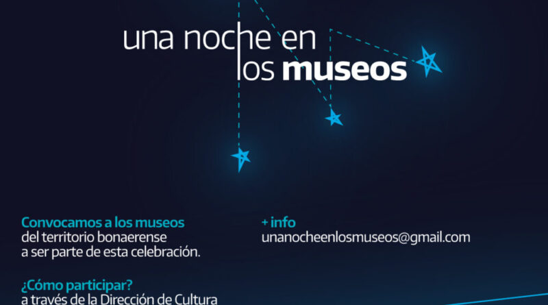 Organizado por la Dirección Provincial de Patrimonio Cultural, esta nueva edición de “Una Noche en los Museos” tiene el principal objetivo de profundizar y multiplicar el alcance territorial y cultural del programa, por tal motivo se convoca a los museos de todo el territorio bonaerense a ser parte de esta celebración el próximo 20 de mayo. Para participar deberán hacerlo a través de la Dirección de Cultura de su municipio, además se puede solicitar información escribiendo a unanocheenlosmuseos@gmail.com