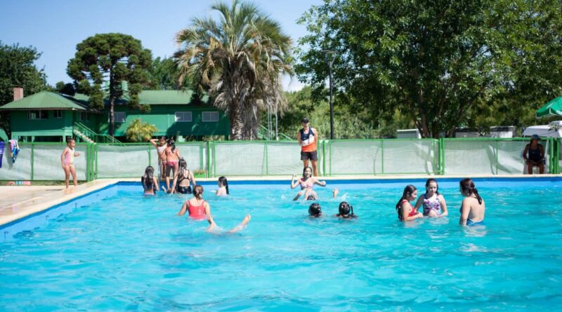 Los chicos y chicas disfrutan de diversas actividades en la pileta, el río y los campos de juego del Complejo Recreativo Cristina Fernández Kirchner, acompañados por profesores y guardavidas.