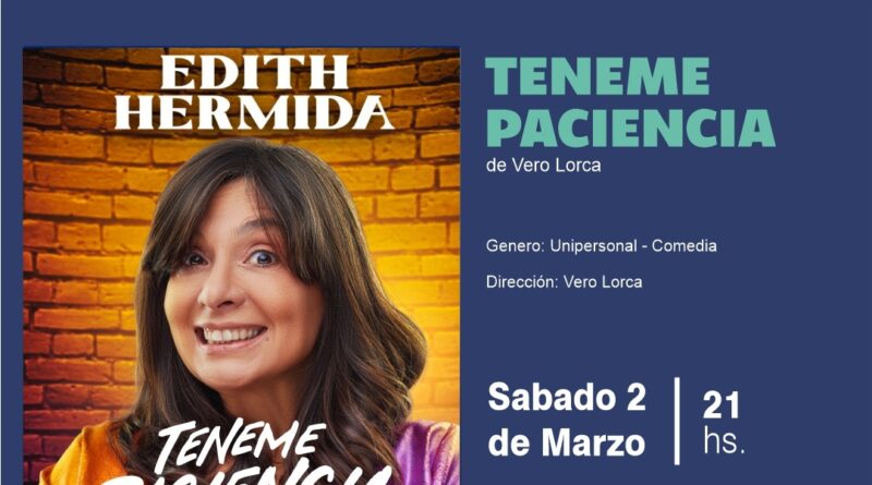 El Municipio de Moreno, a través de la Secretaría de Cultura, Educación y Deportes, presentará en el teatro municipal “Leopoldo Marechal”, ubicado en Asconapé 85, la obra «Teneme paciencia”, el día sábado 2 de marzo, a las 21 horas. De entrada libre y gratuita.