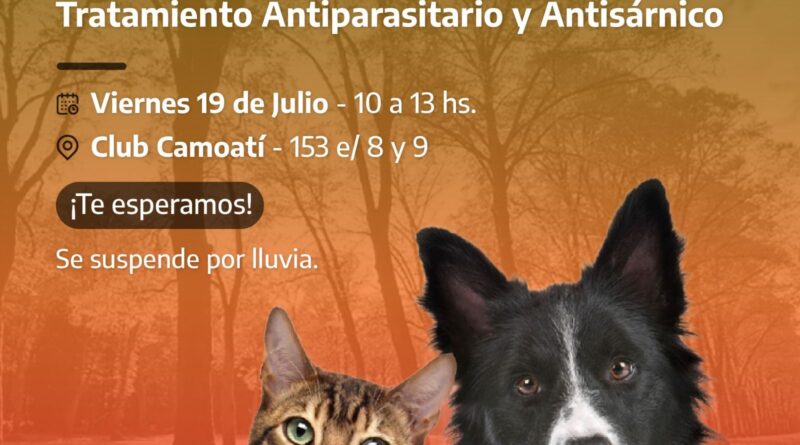 La jornada está a cargo del departamento de Veterinaria del municipio, en la que se aplicará tratamiento antiparasitario, antisárnico y atención primaria de mascotas.