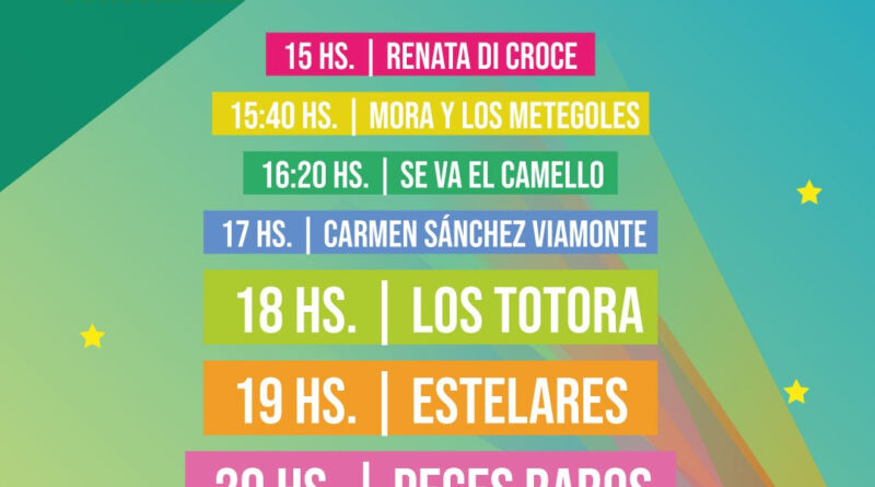A las 18:00 será el momento de Los Totora, que harán bailar y gozar a los presentes con sus exitosos temas convertidos en clásicos de cumbia, y a las 19:00 se presentará la banda de rock Estelares con su fusión de pop y melodías tangueras.