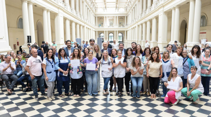 Por su parte, Sileoni remarcó: “Es un poco más de dignidad para las escuelas que ustedes conducen; sabemos que no les va a cambiar la vida, pero ayuda; y sabemos que el corazón de la escuela no es el comedor, es el aula, y que ahí se juega el destino de la escuela; pero es necesario tener una cocina y un comedor con la dignidad que merecen nuestros pibes y pibas, y nuestras directoras que le ponen el pecho todos los días”.