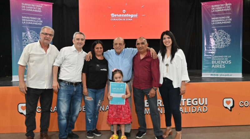 En el marco de la Ley 24.374 de Regularización Dominial que impulsa el gobierno de la Provincia de Buenos Aires para promover la igualdad de derechos y el acceso a la vivienda, el ministro de Desarrollo de la Comunidad, Andrés Larroque, junto al intendente de Berazategui, Juan José Mussi, otorgaron 246 títulos de propiedad a vecinos y vecinos de 66 barrios del distrito. Del acto, también participó el Subsecretario de Hábitat de la Comunidad, Rubén Pascolini y la titular de la Agencia de Tierras y Hábitat municipal, Cecilia Roldán.