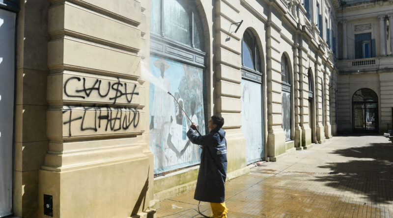 Además, en el marco de la megaobra de recuperación que la Municipalidad de La Plata pondrá en marcha en el emblemático Centro Cultural Pasaje Dardo Rocha, las cuadrillas municipales iniciaron el hidrolavado de la fachada de calle 50 entre 6 y 7.