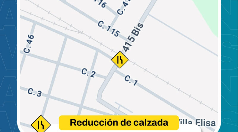 Desde el viernes 25 y hasta el miércoles 30 de julio inclusive, la Municipalidad de La Plata implementará una reducción de calzada en la bajada de la autopista a la altura de las vías del ferrocarril, en el ingreso a Villa Elisa.